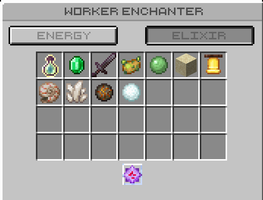 Right-clicking your pickaxe will open the enchanting menu. Different enchants use either energy or elixir to upgrade them. These are extremely helpful in boosting your progression as mining is one of the main ways to make energy and elixir to upgrade your worker enchants.