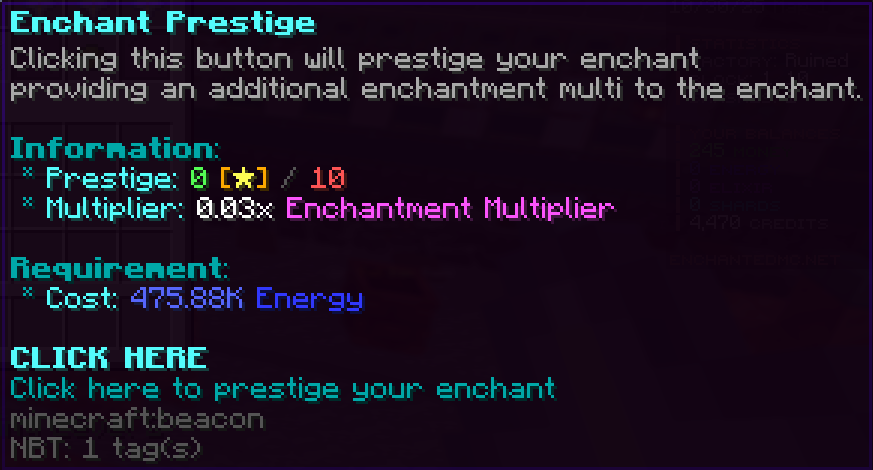 After completely maxing an enchant, you'll have the option to prestige it. This gives a boost to the enchant, adding an enchant proc multiplier to that enchant.