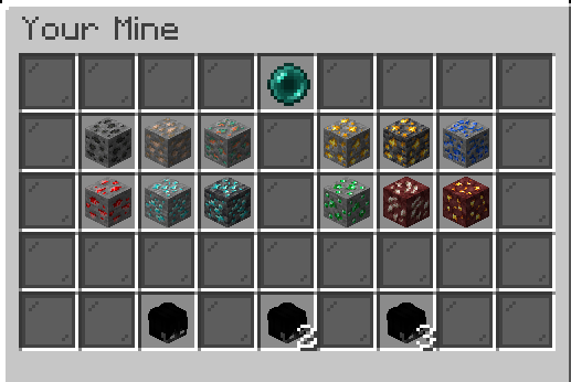 When you first spawn in you'll be given your first pickaxe, which you'll use in the mines. You can access your mine using the command /mine. Clicking the ender pearl will teleport you, where you'll start off mining coal ore. You can unlock better ores by upgrading the tier of your factory! As you mine, you'll receive energy and elixir, which is used to upgrade enchants for your pickaxe and workers.