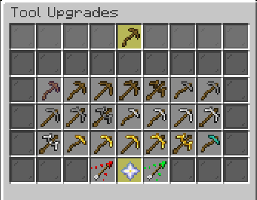 You'll start off with the worst tier of a wooden pickaxe, which just gives you base stats for break speed, energy, and elixir. You can use money to upgrade your pickaxe by right-clicking your pickaxe and clicking on the pickaxe item frame in your GUI.