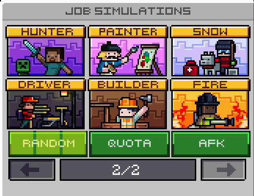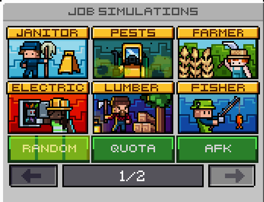 Jobs are the other main way to make energy and elixir to upgrade your workers! They can be accessed through /jobs, and act as a simulation where you go into a world and are given a task to complete to receive rewards. There are 12 different jobs to choose from, each giving you rewards based on how quickly you complete the task. Jobs are also the only way to earn resources, which are used in upgrading your HQ.