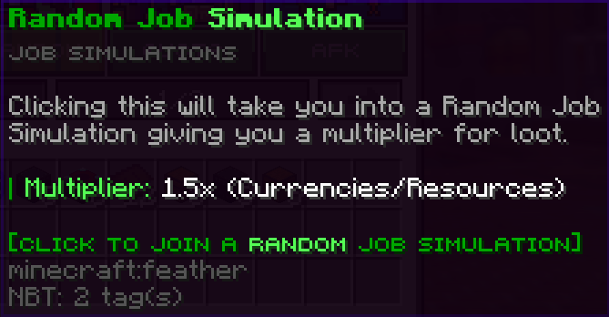 Clicking the random button in the /jobs menu will choose a random job for you to do, but in return you get a multiplier on the rewards you receive. This is a good choice if you don't have a preference and want to earn a little more loot!