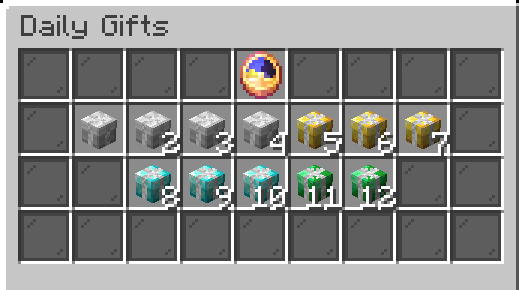 Gifts are a set of playtime rewards that you're able to receive daily! These gifts are a good way to boost your progression over time. Gifts also have a small chance to be a golden gift, which has the chance to give extremely rare items, so don't forget to claim them everyday.