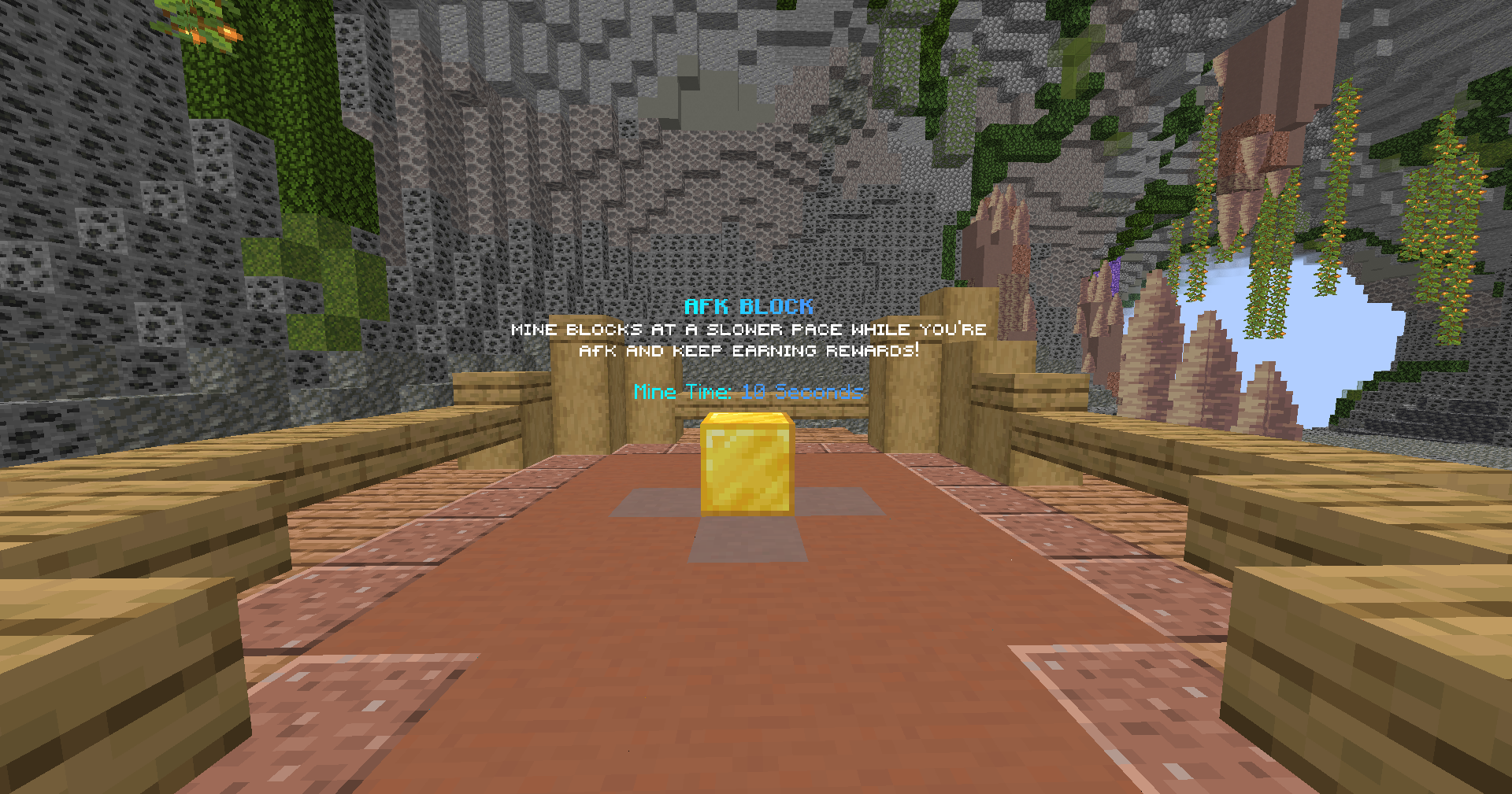 You can also find the AFK block to the left when you teleport into the mines. This will allow you to mine blocks while just sitting nearby it, earning you energy and elixir. It mines blocks at a slower rate, but you're able to increase the speed by using a booster cookie.