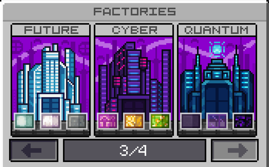 This is an unannounced feature that we decided to implement after QA Suggestions and Feedback, there will be a total of 12 Ores, each Ore is progressed with your Factory (12 Factories = 12 Ores). The mining system we have done for Factory is slow-mining, you will progress through different ores (higher tier ores are harder to mine - but give more Energy/Elixir).
