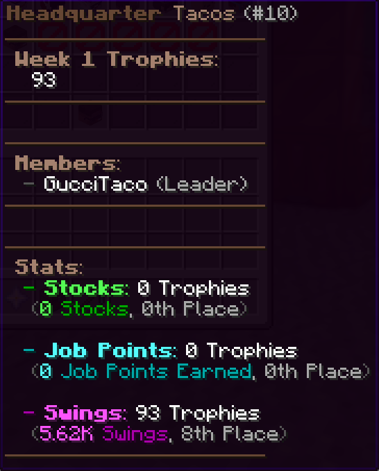 Headquarter Top will also use a Trophy/Ranking System similar to our other Realms. There are 3 Trophies and these consist of:
