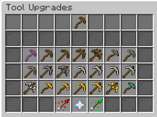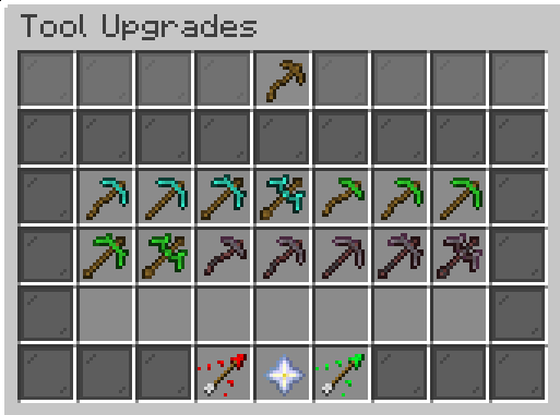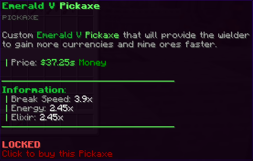 The [Item Frame] button above will take you to a Tool Upgrades menu which will allow you to spend Money for different Pickaxe Upgrades, increasing your Energy, Elixir and Break Block Speed multiplier.